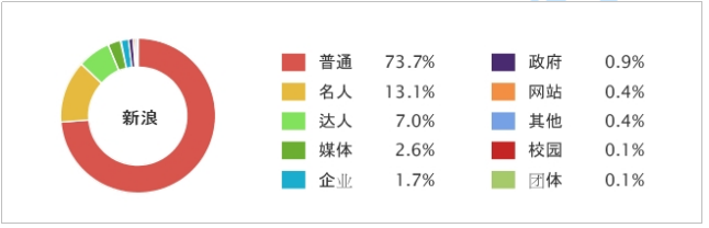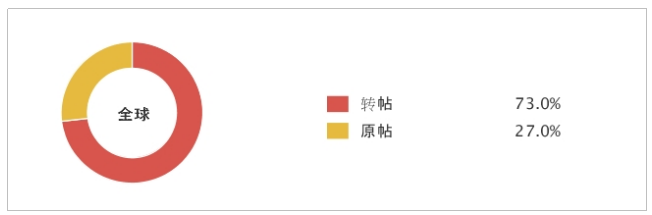 由上图可知,有27%的网民针对该话题发表了原创观点或消息。其中原创文章中的新闻与评论很大一部分来自媒体账号以及大V账号,可以推知在互联网生态圈中,传统媒体依旧是权威信息的重要来源,起着把关人及意见领袖的作用。而其他73%的网民转发了这些信息,帮助话题大规模传播,增强了话题的影响效果。