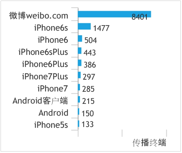 由上图可以看出,大部分言论来自微博weibo.com,可见在此事件中使用传统的电脑设备依旧是大多数网民的操作习惯,而移动客户端的排名顺序则与各种移动设备的市场占有率有关。