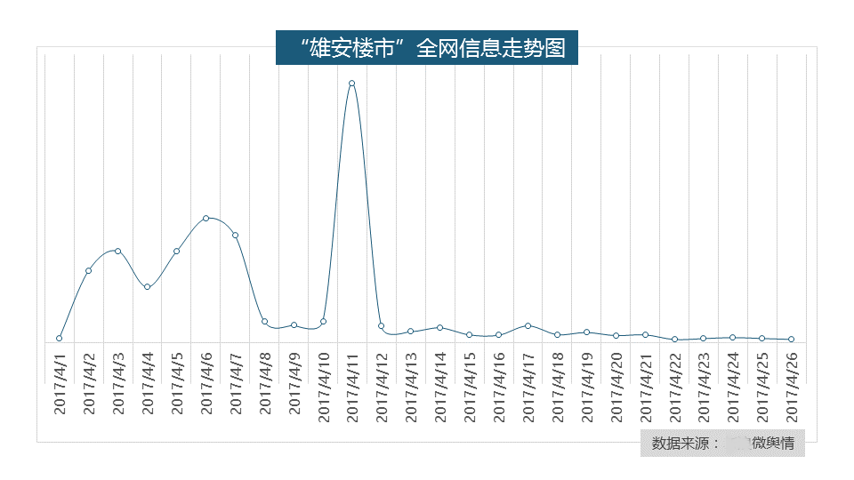 与雄安及周边地区楼市逐渐退烧的趋势相吻合,雄安楼市的相关信息量在管控政策出台后逐渐减少。通过“雄安楼市全网信息走势图”可以看出,在4月13日后,该话题的信息量开始明显下降,并逐渐走低,这在侧面说明网友对于雄安楼市的关注热情在逐渐降低,进入“速冻”模式。