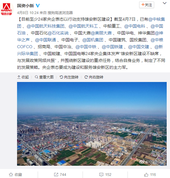 46家央企发声支持雄安建设通信类企业舆论关注度高