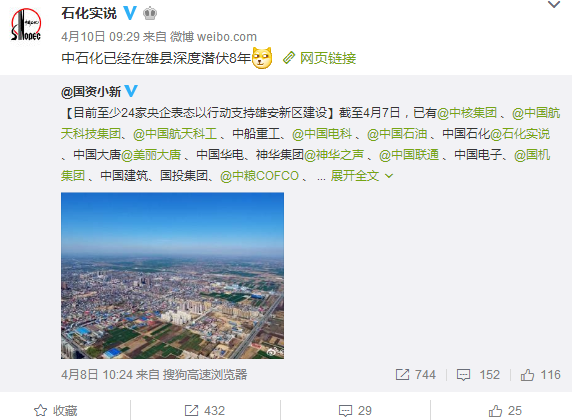 同时,作为央企自媒体,中国石化新闻办公室官方微博@石化实说积极发声,微博“中石化已经在雄县深度潜伏8年”生动讲述中石化与雄县政府合作开发地热资源的案例,获得网友热切关注,转发量达到432次,推动了相关事件的网络传播。