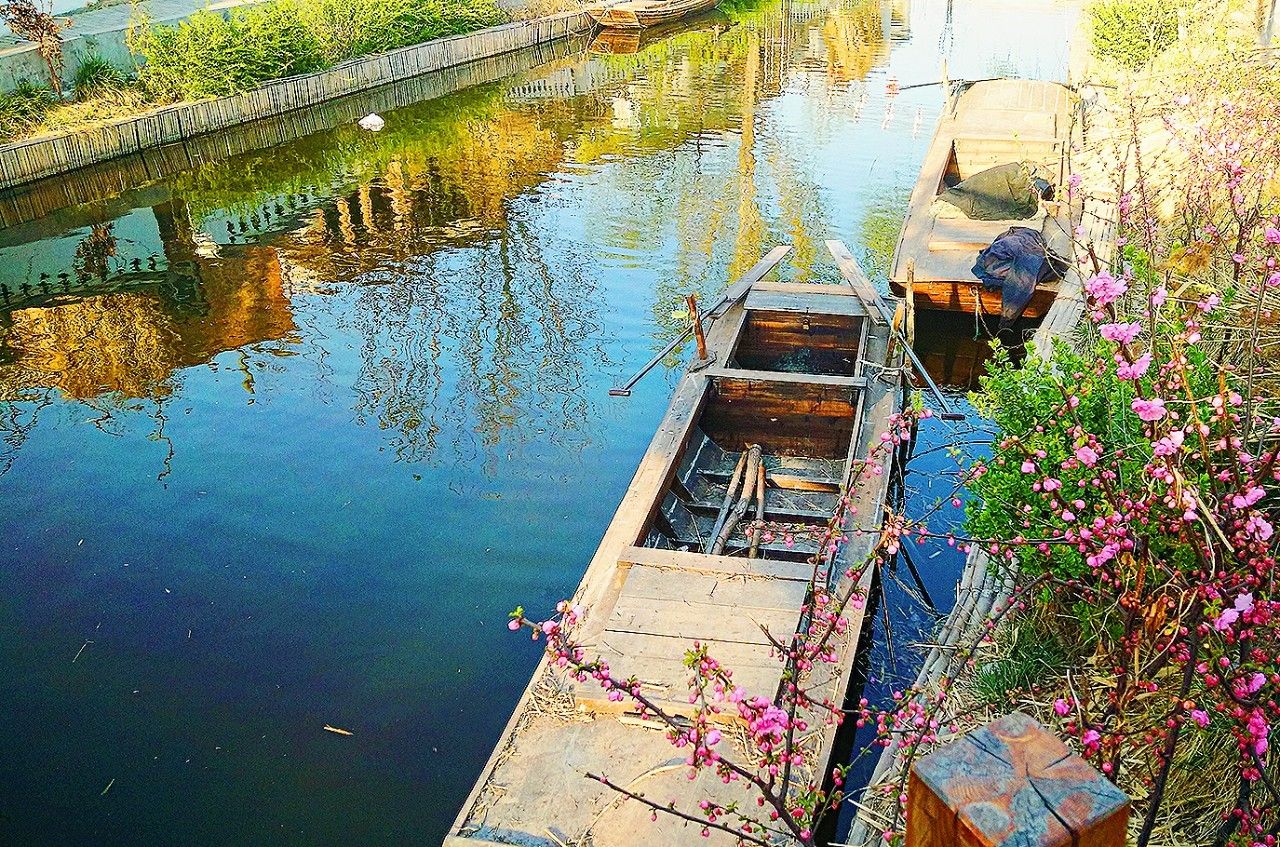 白洋淀的春天,长堤烟柳,最适宜踏青。春天“开河”了,岸边、院落、淀上,修船的修船,打渔的打渔。