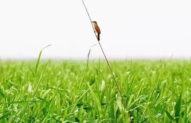 春天,芦苇出水,满淀青翠,每逢清晨,红日映透淀底,白洋淀好像披上了绿带霞衣。