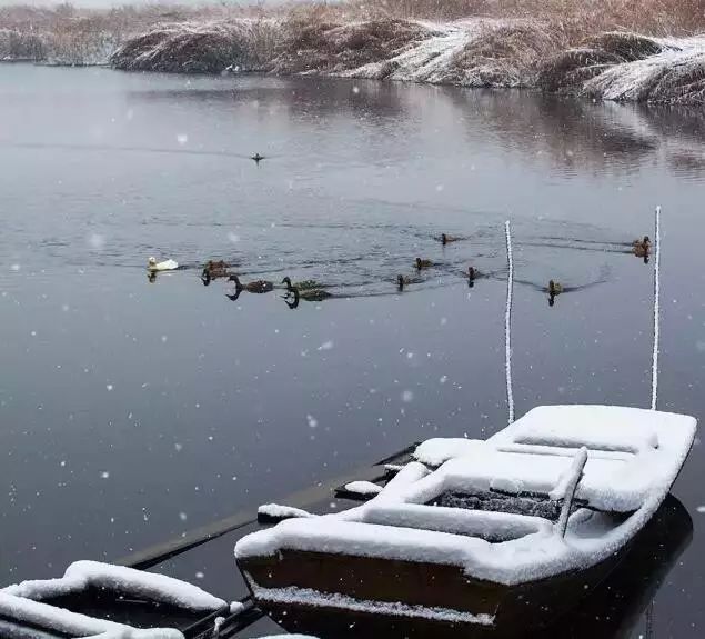 冬天的白洋淀一片银白,四处都很安静,只有偶尔传来的破冰捕鱼的声音和冬泳爱好者的欢声笑语。
