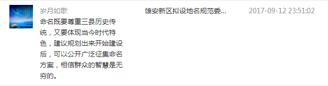 雄安新区的大街小巷,名字该咋起?昨天,“雄安发布”刊发消息《雄安新区拟设地名规范委!新建城区、街道将这样命名》,不少读者网友热情留言,表达自己的观点和看法。