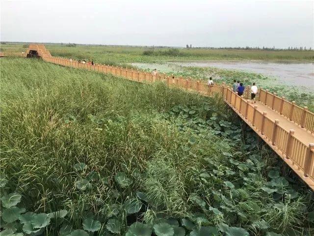 安新县郊野公园的栈道,迎来休闲的游人。王敏摄