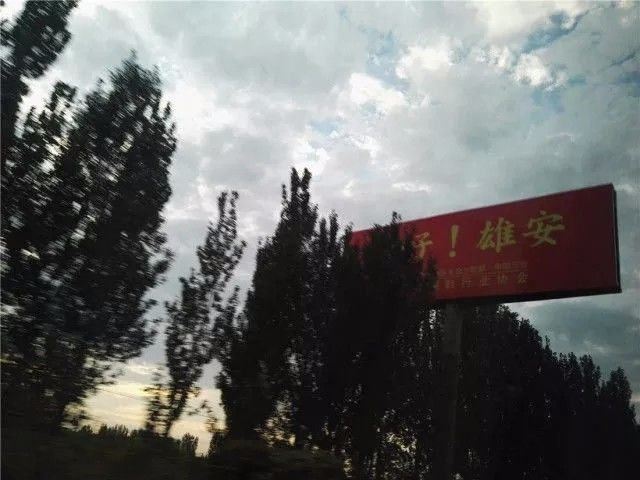 进入雄安的道路上,“你好,雄安”的标语 张旭东摄