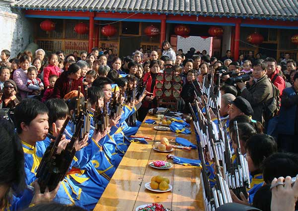 2007年11月9日,圈头村音乐会为来考察的中外学者演奏传统乐曲。