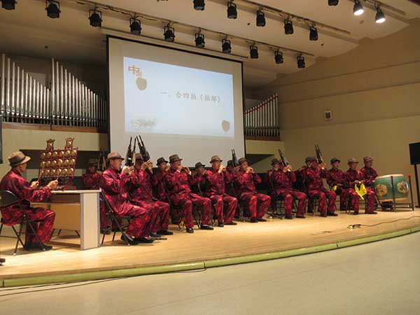 2016年5月7日,雄县韩庄村音乐会在中央音院演奏文套大曲《泣颜回》。
