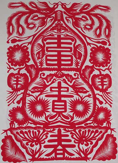 剪纸是这一带广泛存在的传统美术形式,我们普查时录入了5个剪纸项目。这里民间的随手剪不用提前描样,而是随心所欲信手剪出各种吉祥图案或文字。剪纸题材十分广泛,有喜鹊闹梅、有凤来仪、福禄平安、福寿延年、连年有余等喜庆吉祥的图案。这些图案非常精美,线条流畅,构思精巧。在不同的时令或重要的日子,剪纸的构图和内容都很有讲究,体现了农耕社会里人们的审美观念和文化追求。雄县瓦桥一带的剪纸一般为折叠剪,这是民间最常见的一种剪纸方法,即经过不同方式折叠剪制而成的剪纸。这种折叠剪纸折法简明,造型概括而有一定变形,尤其适于表现结构对称的形体和对称的图式,如花鸟鱼虫、植物、动物图案等。
