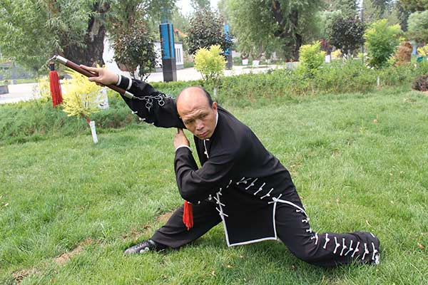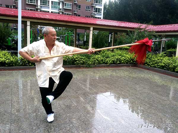 安新县赵北口镇东街村章小明武师的枪术表演。