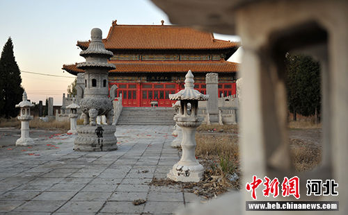 来到明月禅寺门口,景象却和我们之前想象的古刹有很大的差别,仅有一座大雄宝殿,且建成年代看起来并不久远。晾马台遗址上仅有一座1982年设立的河北省文物保护单位的水泥台墙。