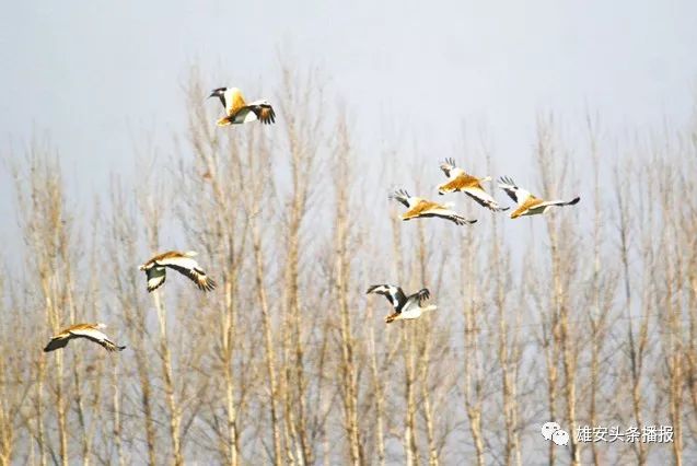 日前,河北雄安新区安新县白洋淀湿地保护区管理处工作人员在白洋淀畔观测到一群正在觅食的国家一级重点保护鸟类——大鸨(bǎo)。