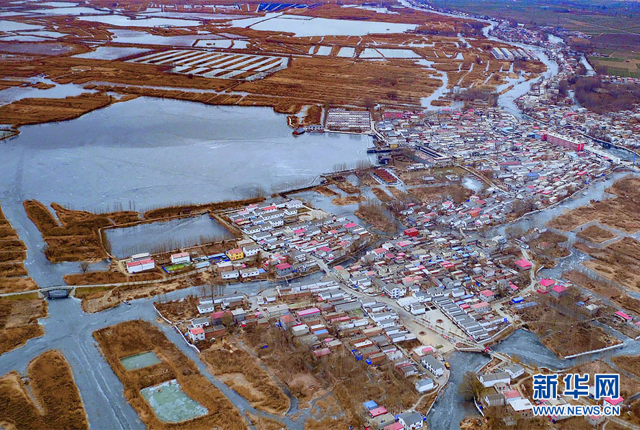 深冬时节,白洋淀进入结冰期,东淀头村被“冰河”环绕,冬韵十足。东淀头是雄安新区安新县城东南处一个风光秀美的小村庄,村子地处白洋淀水区之内,人口约1200人,是河北省美丽乡村。新华网 王立鹏摄