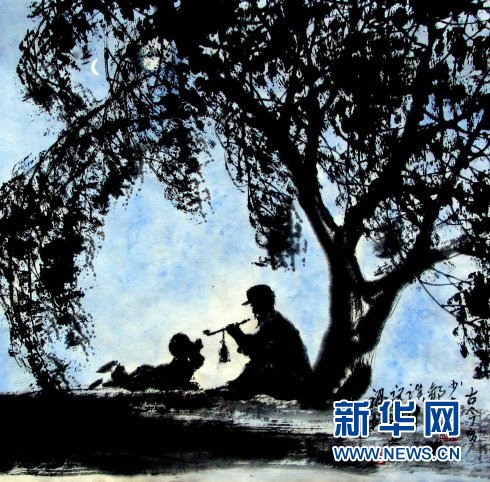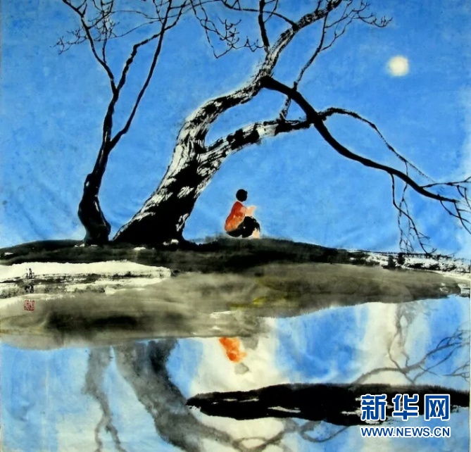 人与月对话,诉的是憧憬,道的是牵挂,亦有几分思念……(张苗苗/文 王福增/绘)