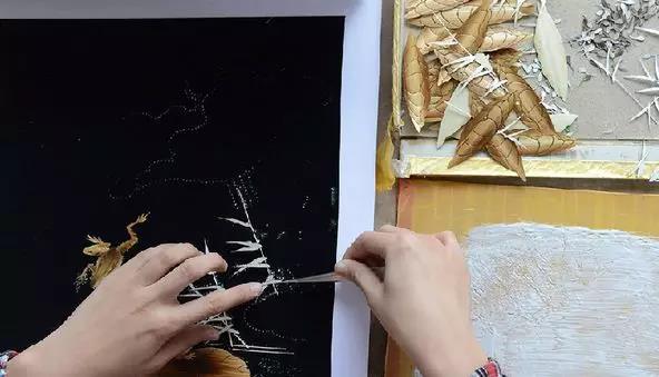 手工艺人在制作芦苇画。新华网王立鹏摄