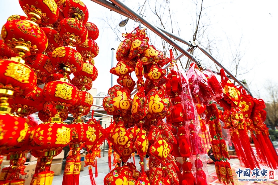 容城县街边的新春福袋生意很红火。 毛鹤然/图 张鹏/文