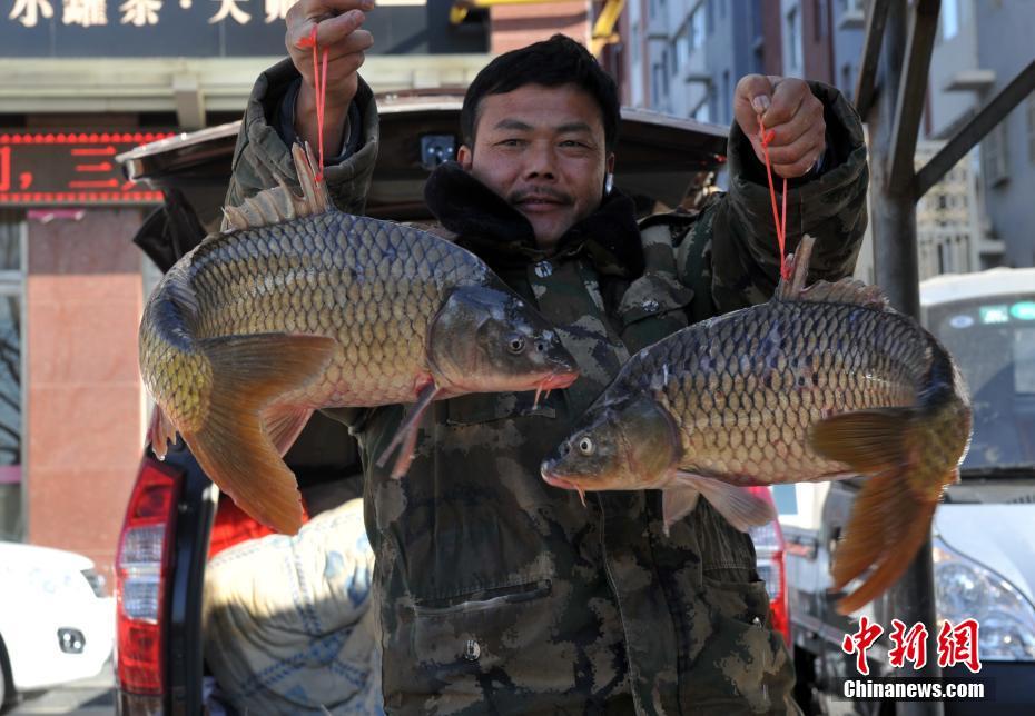 2月12日,腊月二十七,河北雄安新区即将迎来设立之后的首个春节。雄安三县街头的民众们买年货、挂灯笼、逛花市热闹非凡。图为安新街头民众展示“年货”。 中新社记者 韩冰 摄