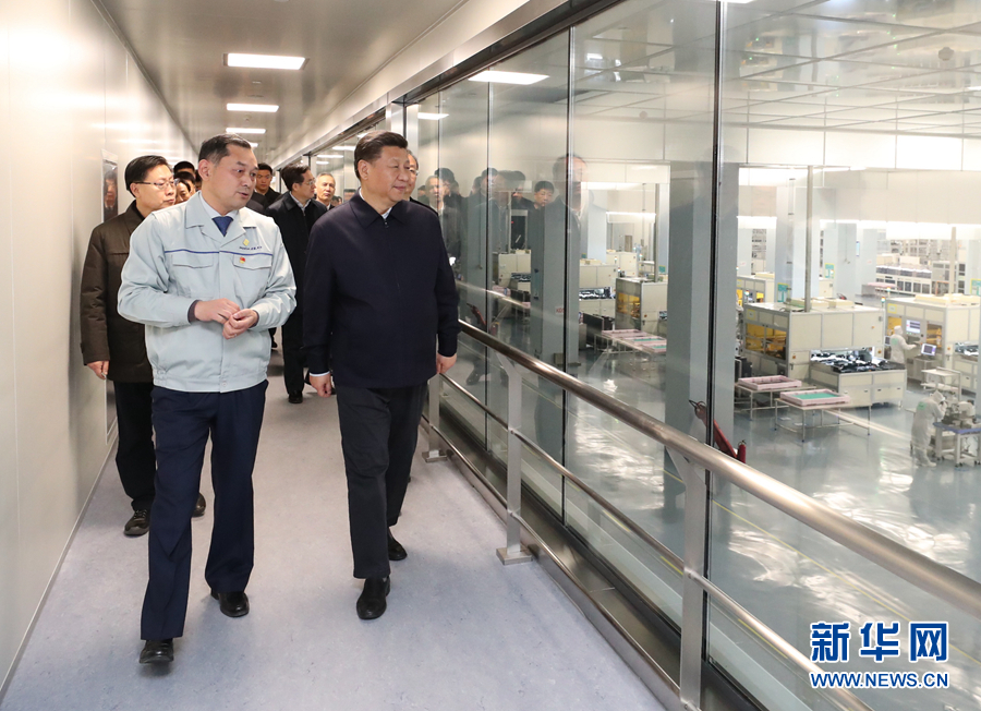 中华民族传统节日农历春节来临之际,中共中央总书记、国家主席、中央军委主席习近平来到四川考察调研,看望慰问各族干部群众,向全国各族人民致以美好的新春祝福。这是2月11日下午,习近平在成都中电熊猫显示科技有限公司考察。 新华社记者 谢环驰 摄