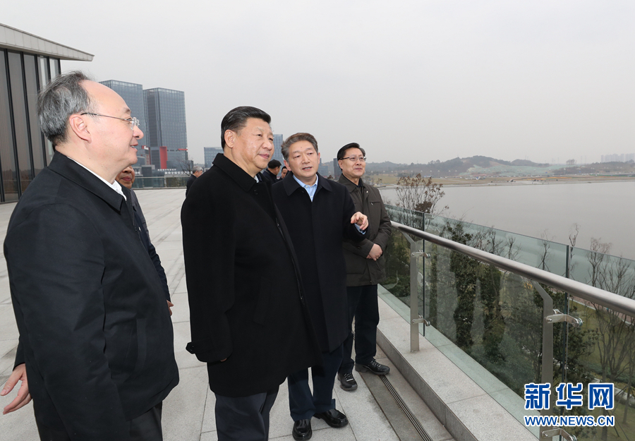 中华民族传统节日农历春节来临之际,中共中央总书记、国家主席、中央军委主席习近平来到四川考察调研,看望慰问各族干部群众,向全国各族人民致以美好的新春祝福。这是2月11日下午,习近平在成都天府新区考察。 新华社记者 鞠鹏 摄