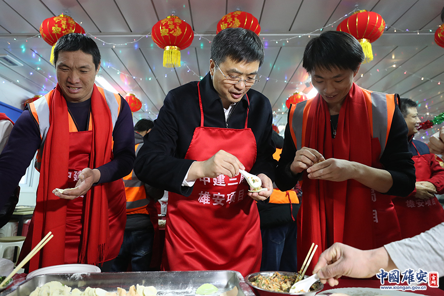 春节期间,雄安市民服务中心项目建设“不停工”,3000余名建设者坚守岗位,高要求高标准加快推进建设任务,以热火朝天的建设热情迎接新区第一个春节的到来。2月15日下午,河北省委常委、副省长,雄安新区党工委书记、管委会主任陈刚来到项目现场,慰问一线建设者,并与大家一起包饺子喜迎新年。