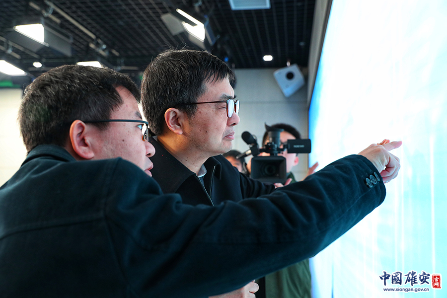 图为陈刚参观中国雄安官网演播室。毛鹤然/摄