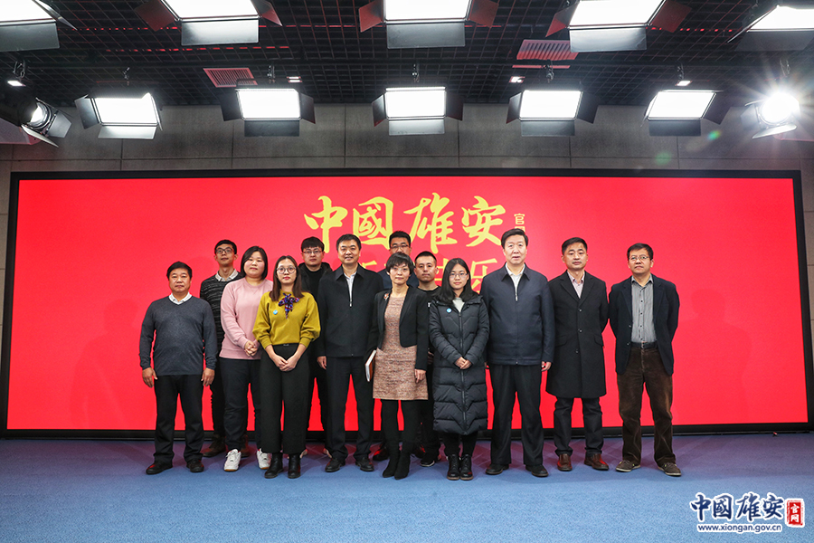 图为陈刚(左六)一行与中国雄安官网工作人员合影。毛鹤然/摄