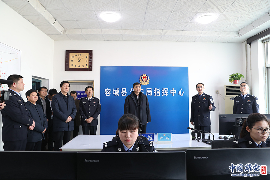 图为陈刚、刘宝玲一行在容城县公安局指挥中心。毛鹤然/摄