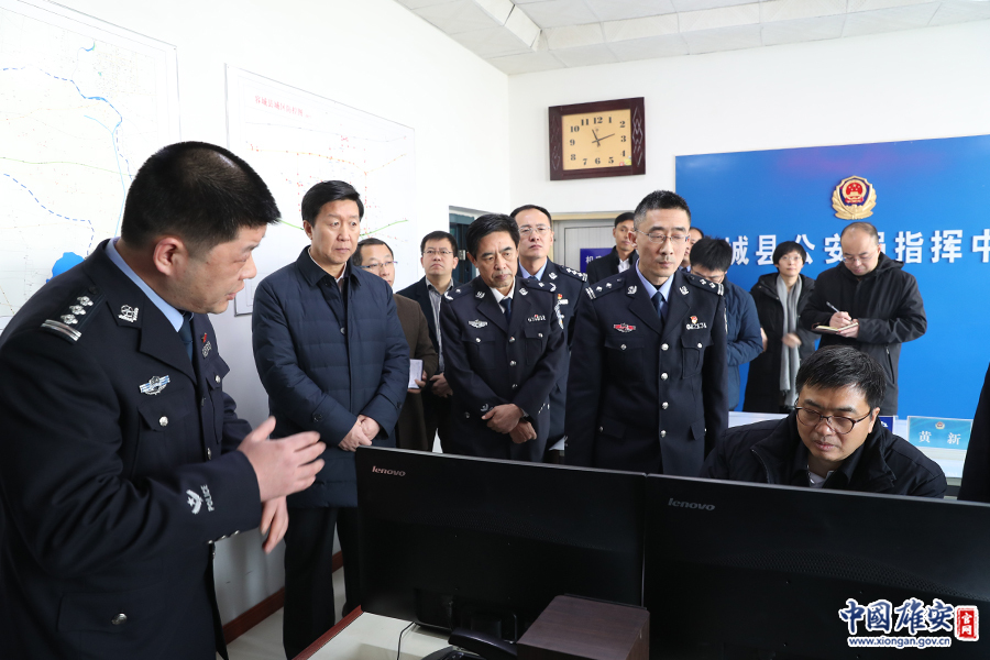 图为陈刚、刘宝玲一行在容城县公安局指挥中心。毛鹤然/摄