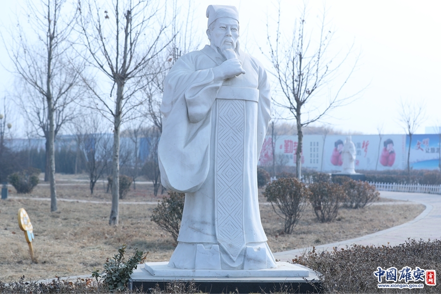 三贤文化广场位于白洋淀大道东侧,是为了纪念“容城三贤”:刘因、杨继盛、孙奇逢而建。图为元初著名理学家刘因雕像。张鹏摄