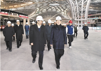 这是王东峰在北京新机场建设工程现场考察。记者 赵 威摄
