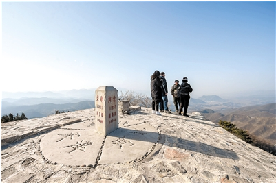 在倪连江的带领下,沿着前干涧村修建的水泥路,再爬过一段“野长城”,记者到达了位于山顶部的“三界碑”。