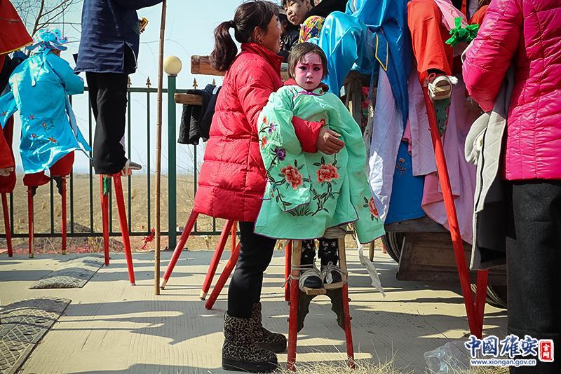 赵北口高跷会上,身穿绣花衣的范佳怡是最小的表演者,年仅4岁。 刘东尧/图 刘琪/文