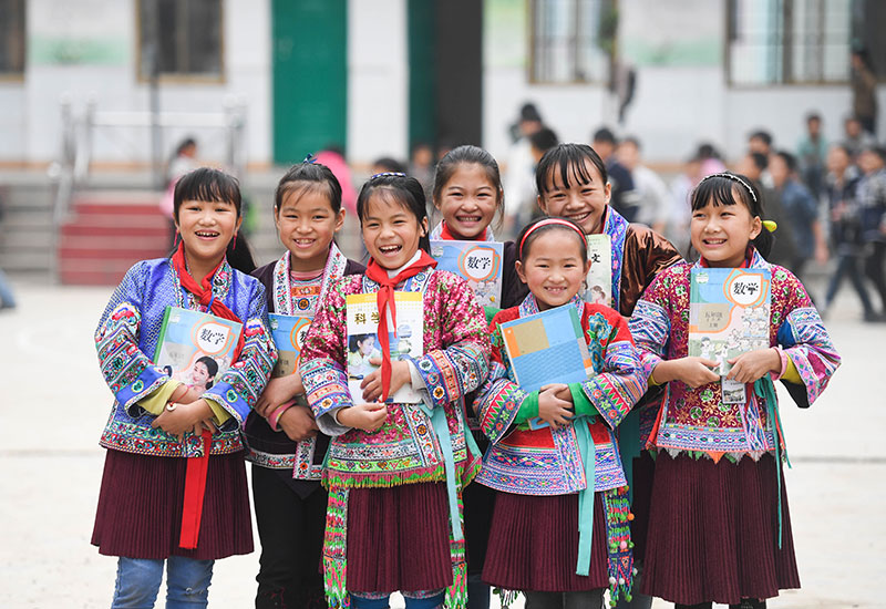 这是广西融水苗族自治县白云乡中心校红瑶女童班的各族女童(2017年11月29日摄)。新华社记者 黄孝邦 摄