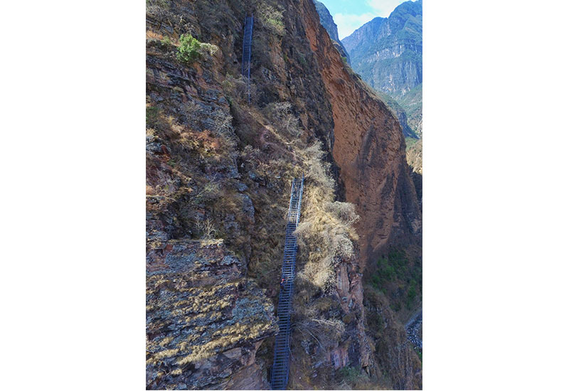 这是四川凉山州昭觉县阿土列尔村的钢梯局部一景(2017年4月13日摄)。新华社记者 刘坤 摄