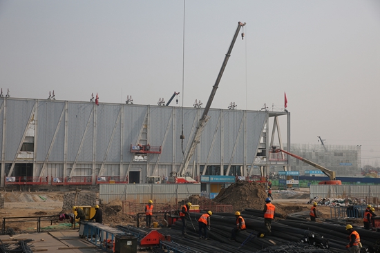 2月18日,河北雄安新区。3000多名工人坚守在建设岗位第一线,在一片热火朝天的施工中迎来雄安新区的首个春节。视觉中国供图