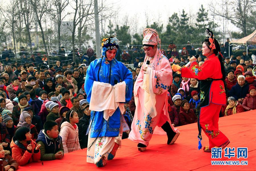 2月28日,在山东省滨州市元宵节民俗文化大集上,演员在表演吕剧。