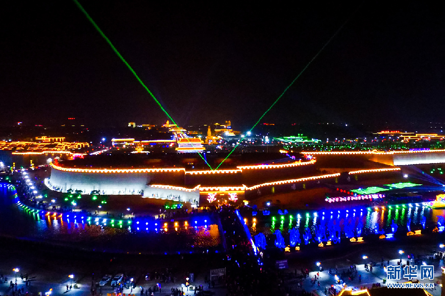 春节期间,在正定古城的南城门外,二十多个形态各异、色彩斑斓的巨形灯组将古城装扮的如诗如画。