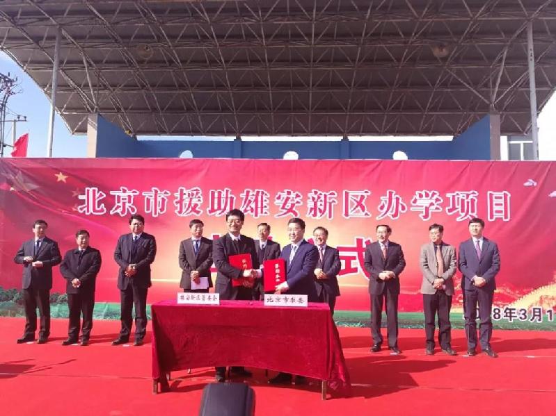 通过近半年沟通协商,此次启动北京市六一幼儿院、北京市海淀区中关村第三小学、北京市朝阳区实验小学、北京市第八十中学分别与雄安新区雄县幼儿园、雄县第二小学、容城小学、安新二中联合办学,开展教育援助办学,支持援助学校提升办学质量。