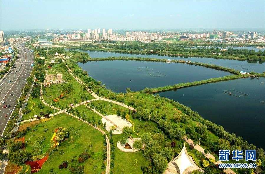 河北省衡水市冀州区滨湖公园(2017年8月9日摄)。这个公园位于衡水湖南岸,原来是一片盐碱荒地。新华社记者牟宇摄