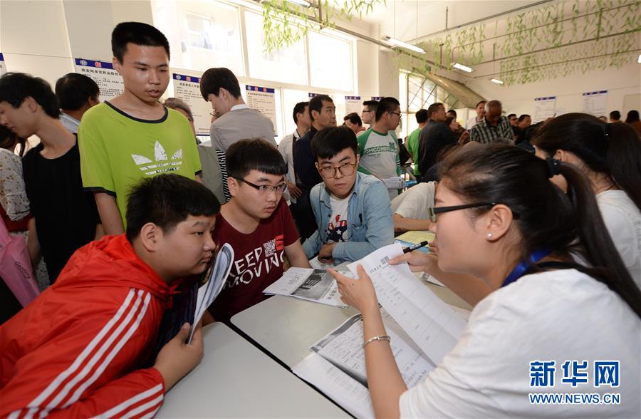 应聘者在西安市残疾人校园招聘会上进行就业咨询(2017年5月17日摄)。