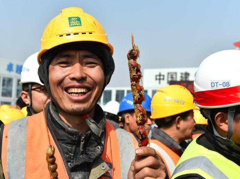 3月2日,雄安市民服务中心建设工地迎来了一个特别的元宵节,雄安新区当地企业、居民带来元宵、糖葫芦,为建设者们送上甜蜜的祝福。