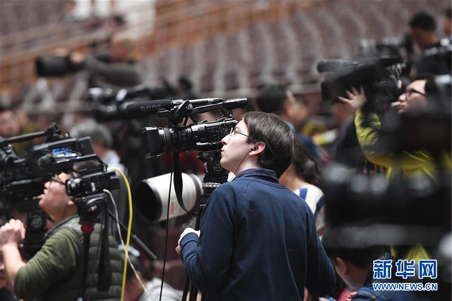 3月3日,中国人民政治协商会议第十三届全国委员会第一次会议在北京人民大会堂开幕。这是记者在会场采访。 新华社记者 申宏 摄