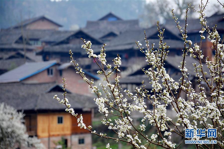 3月3日,贵州省剑河县一村寨旁春花开放。 新华社发(刘进银 摄)