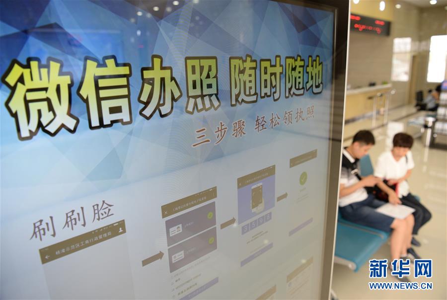 这是陕西杨凌示范区综合服务大厅电子屏上展示的“微信办照”流程(2017年7月17日摄)。为企业“松绑”、为群众“解绊”、为市场“腾位”——党的十八大以来,作为转变政府职能的突破口,一场简政放权改革在中国全面推开,蹄疾步稳。这场政府的自我革命,放真权,动真格,让企业和群众有了切切实实的获得感,极大地激发了市场活力和社会创造力。 新华社记者邵瑞摄