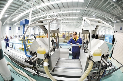 在威县·顺义产业园,北京嘉寓门窗幕墙生产基地的工人正在加工节能门窗。(资料片)记者 赵永辉摄