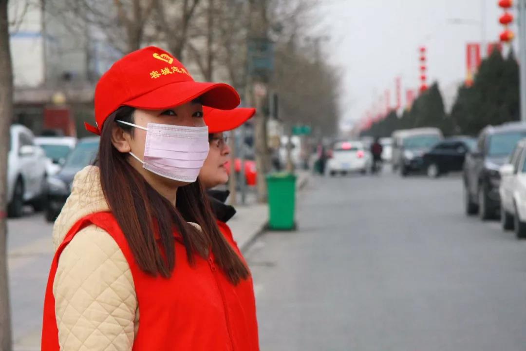 容城县志愿者在路口进行文明劝导。栗翘楚摄