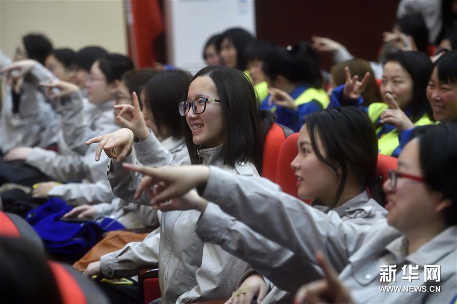 2018年3月6日,中建三局北京公司的100余名女建设者走进北京梅兰芳大剧院,体验京剧,感受国粹魅力,迎接即将到来的“三八”妇女节。新华社记者金良快摄