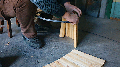 01 破料 工具原料:挨子(控制板的厚度)、电锯、电刨(抛光板儿面)、杉木 工艺流程:锯→刨,把原木锯成厚度一致的木板儿。