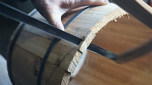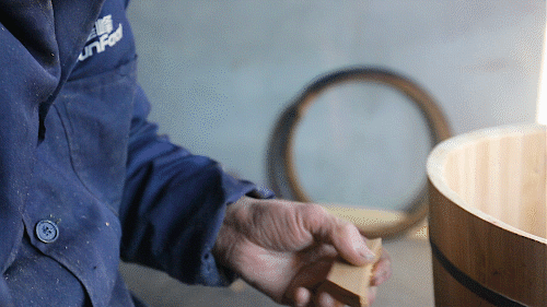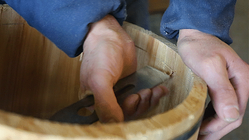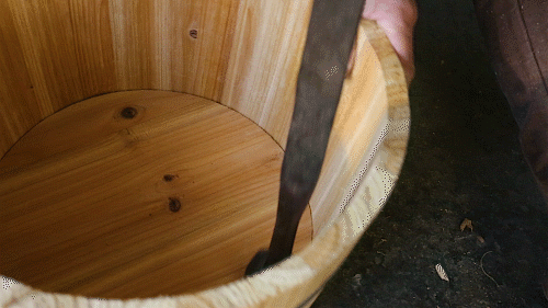 09 挂里子 工具原料:圆刨、初步成型木桶 工艺流程:用圆刨把木桶内壁刮成圆形。